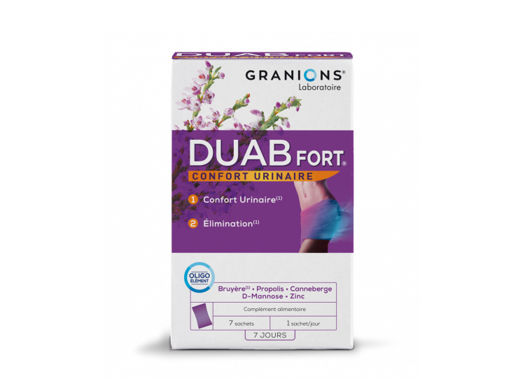 DUAB® Fort është një shtesë ushqimore që është zhvilluar posaçërisht për të ndihmuar në lehtësimin e cistitit akut dhe kështu synon t’ju sjellë rehati urinare dhe mirëqenie të përgjithshme